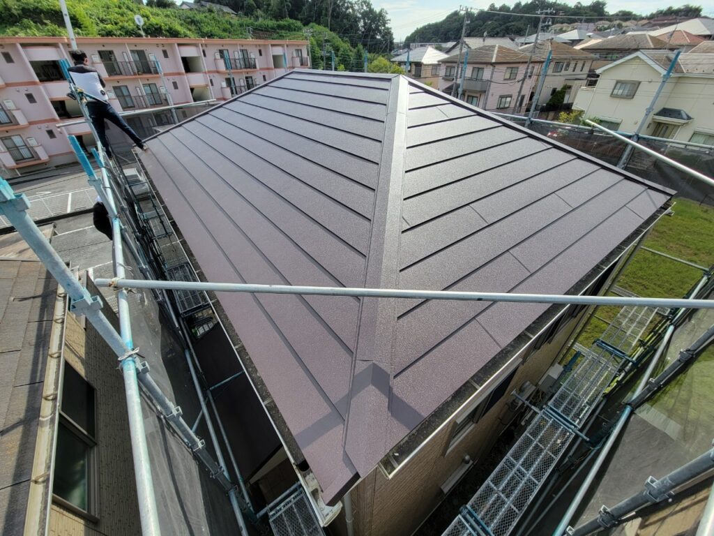 今回使用したガルテクトという屋根材は嵌め合わせて葺くことにより風に強く、耐久性に優れています。