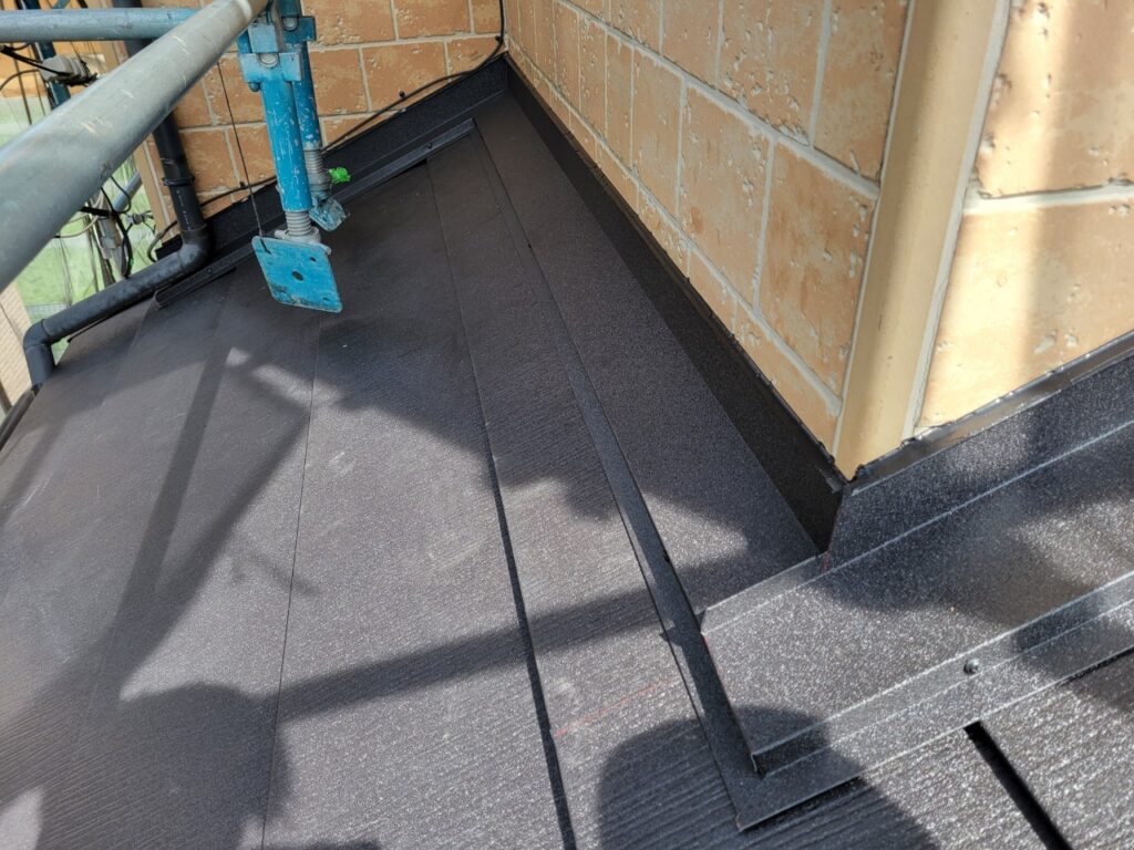 ↓こちらは下屋根部分になります。コーキングによる防水施工も丁寧に仕上げます。