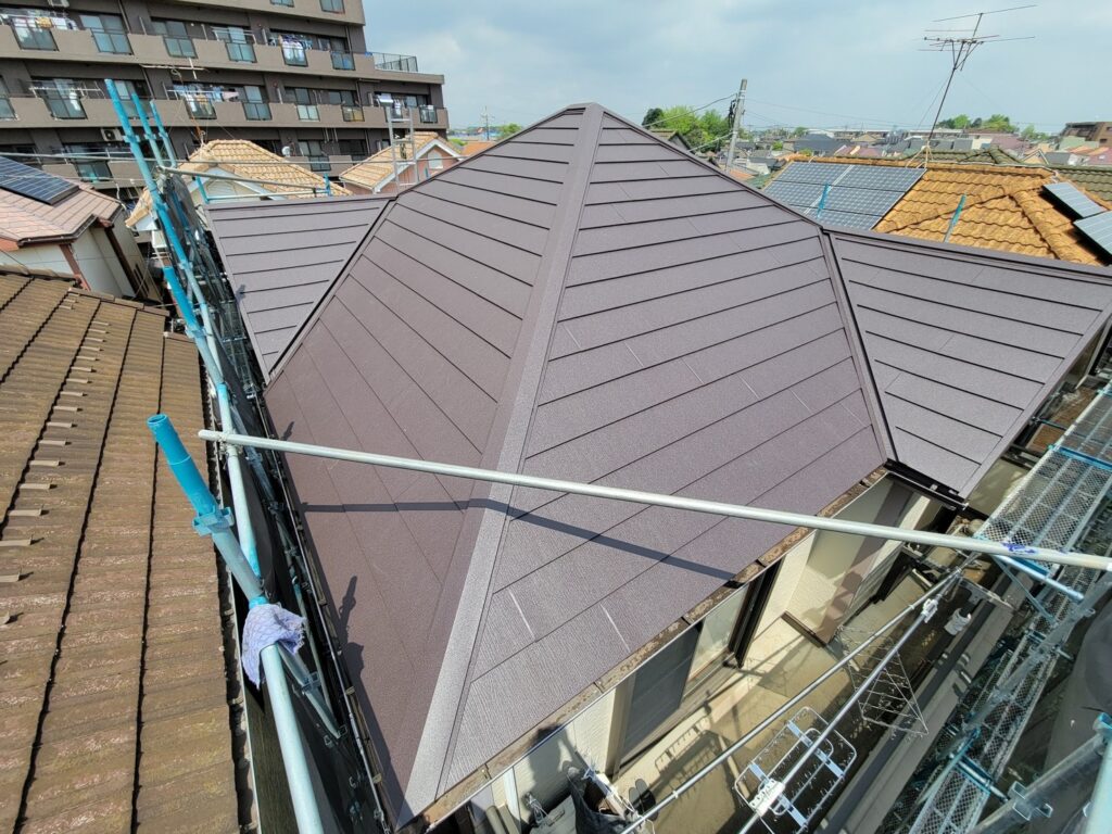 綺麗になったのはもちろんですが、屋根材を変更し屋根自体が軽くなったことで建物にかかる負担も軽減しました!