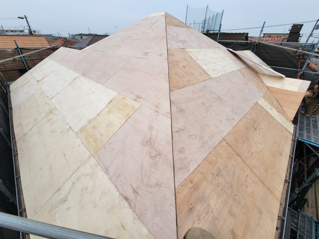 今回使用したガルテクトという屋根材は嵌め合わせて葺くことにより風に強く、耐久性に優れています。