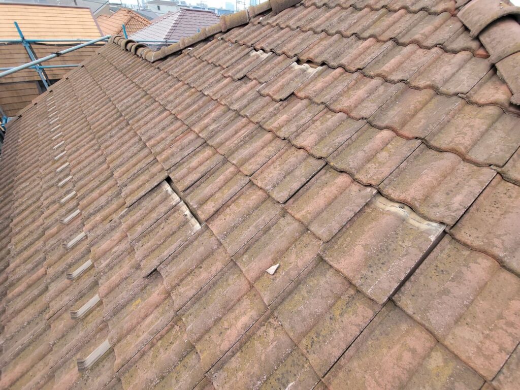ところどころ瓦がずれてしまっています。