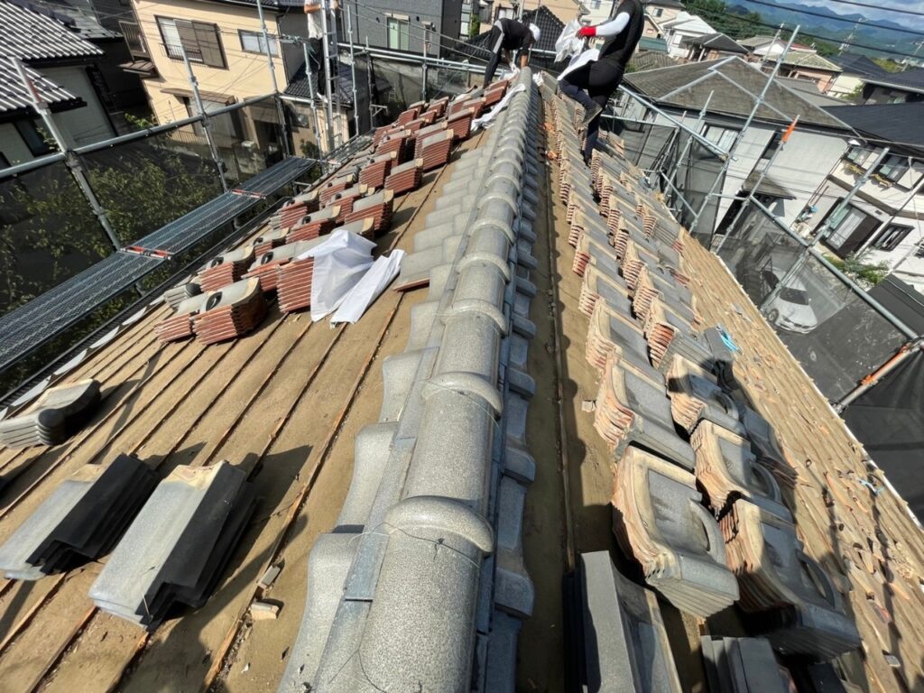 ~before~ beforeは瓦が使用されていました。 瓦屋根は1㎡あたり60㎏といわれており、この大屋根は約60㎡でしたので建物にかかっている負荷はなんと約3600㎏! ものすごい負荷がかかっています。
