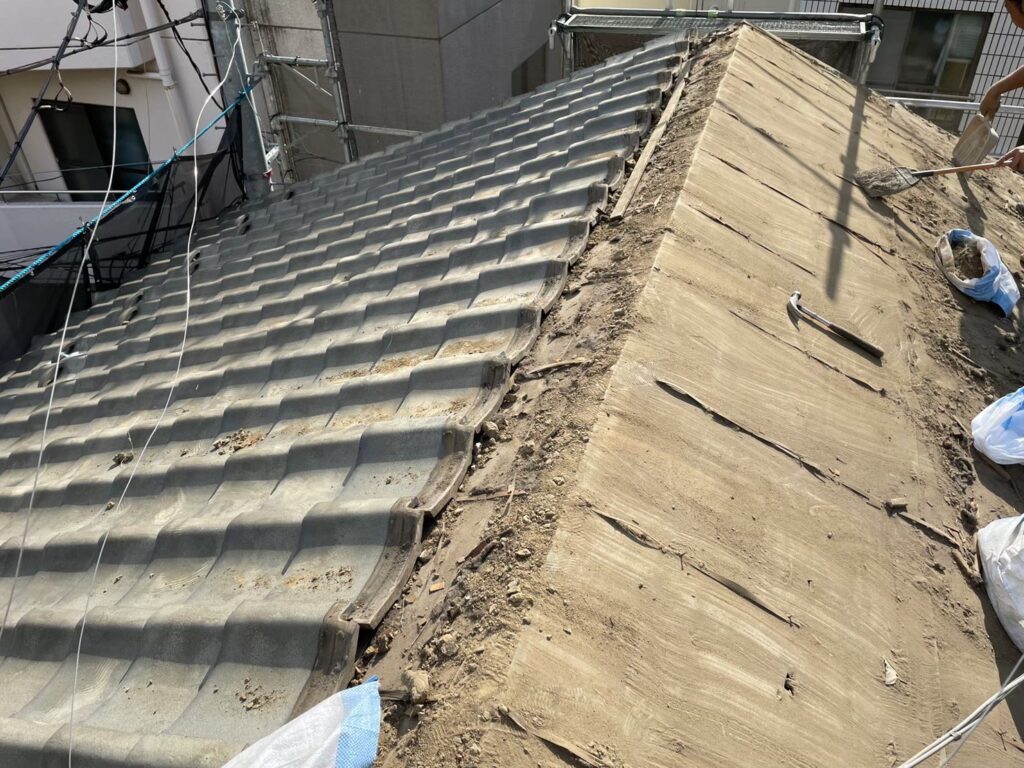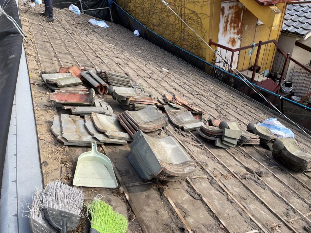 既設の瓦を撤去していきます。