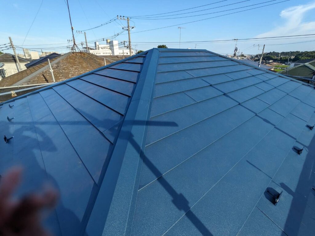 屋根の葺き替えとは。。既存の屋根を解体・撤去し、新しく張り替えることです。屋根材だけでなく、野地板や防水シートといった下地も新しくなるため新築時と同等の防水性の回復が期待できます。~after~スッキ