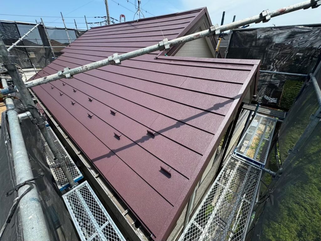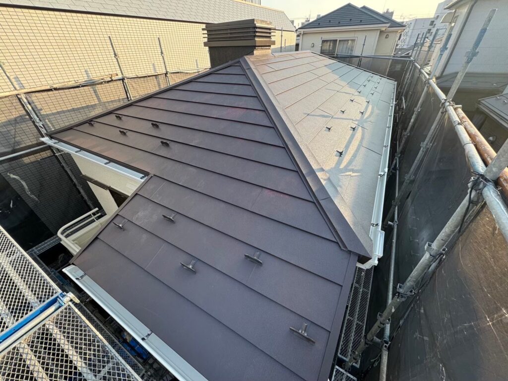 屋根の葺き替えとは。。既存の屋根を解体・撤去し、新しく張り替えることです。屋根材だけでなく、野地板や防水シートといった下地も新しくなるため新築時と同等の防水性の回復が期待できます。~after~経年劣