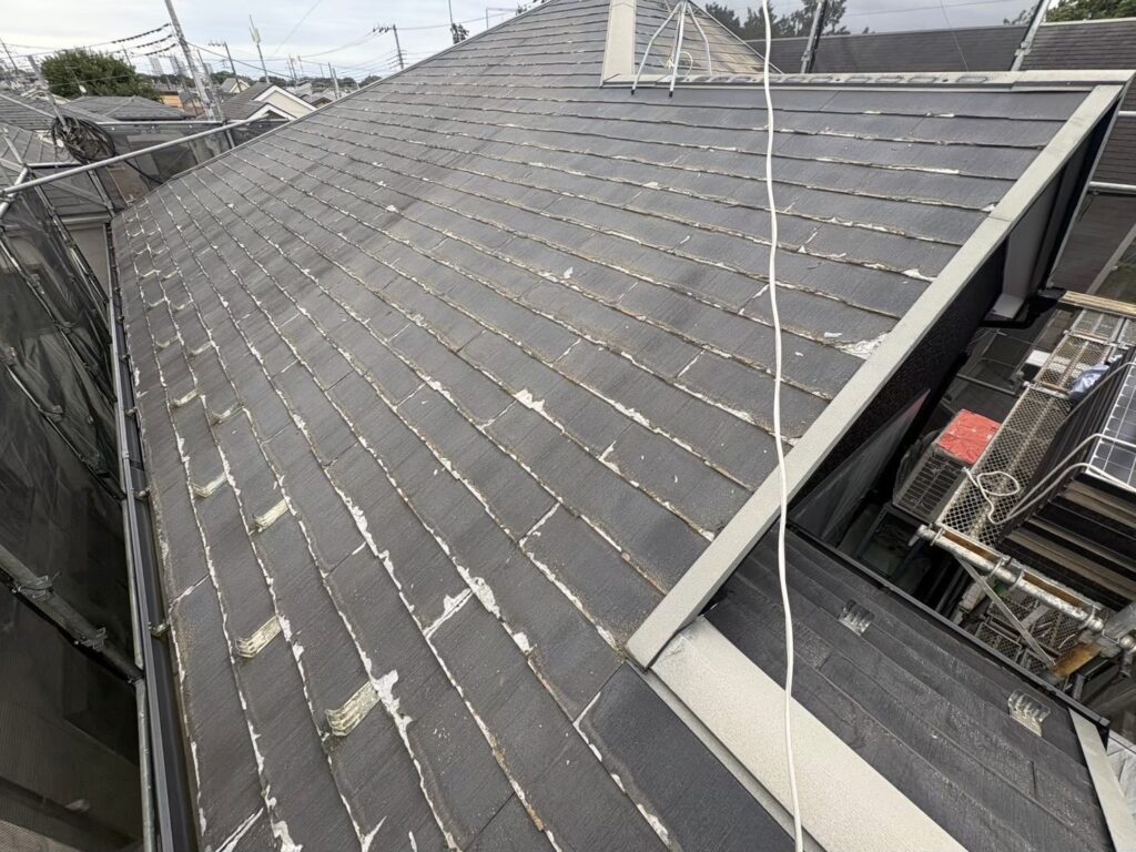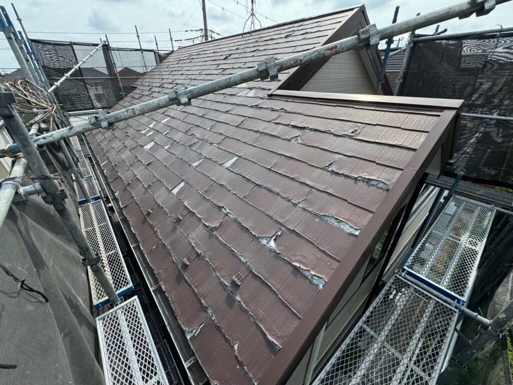 屋根の葺き替えとは。。既存の屋根を解体・撤去し、新しく張り替えることです。屋根材だけでなく、野地板や防水シートといった下地も新しくなるため新築時と同等の防水性の回復が期待できます。~before~全体